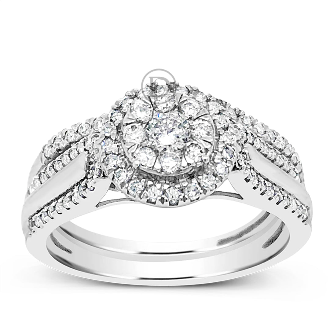 Diamond Halo Engagement Ring .65 CTW Round Cut 10K White Gold