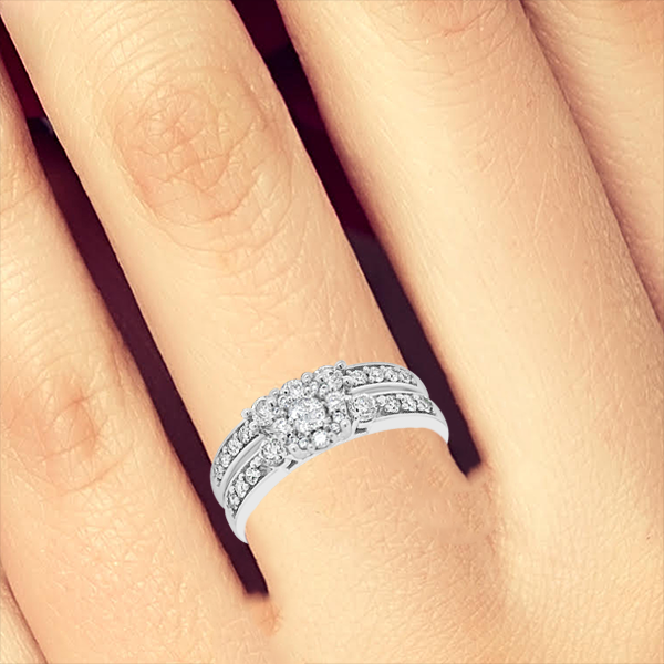 Diamond Halo Engagement Ring .75 CTW Round Cut 14K White Gold