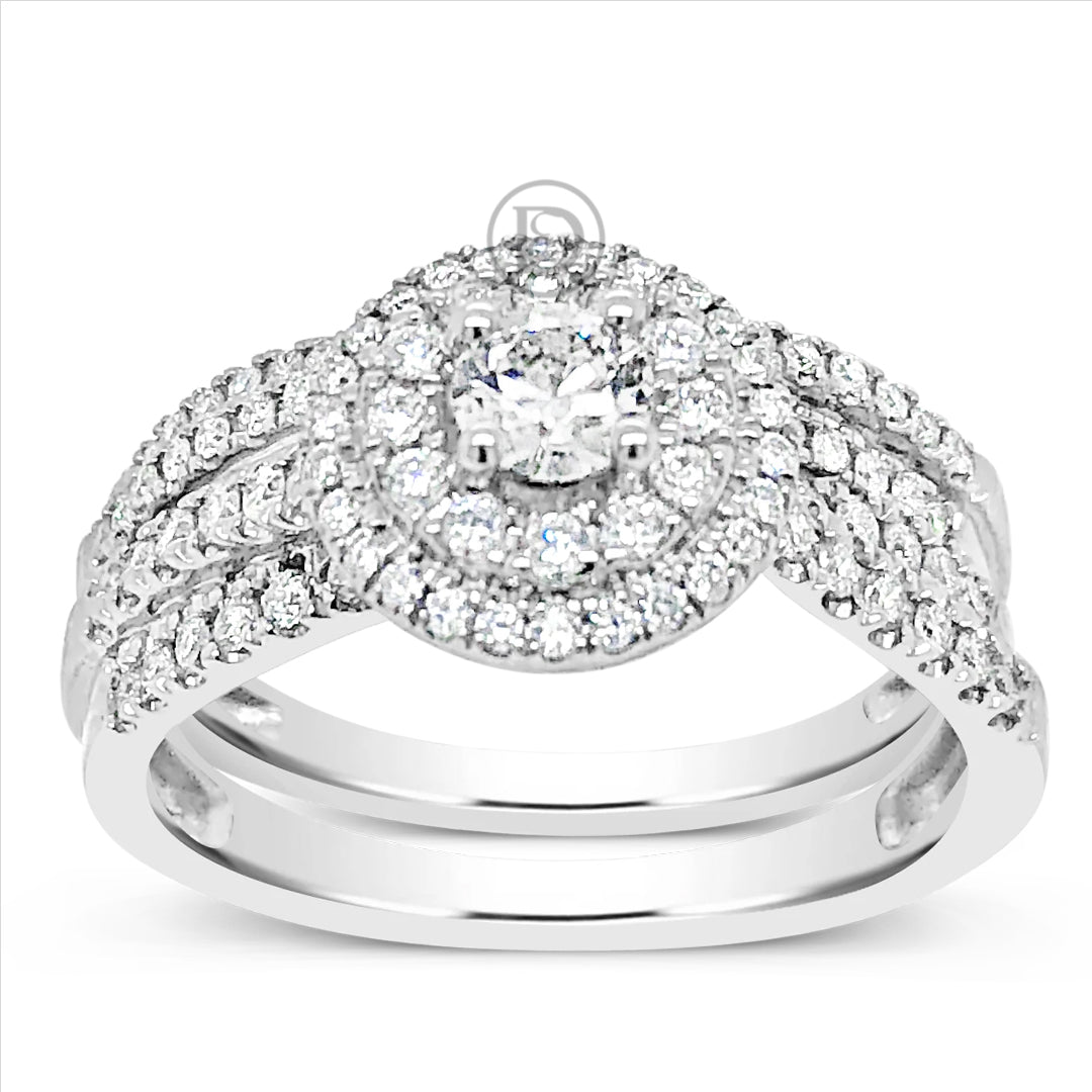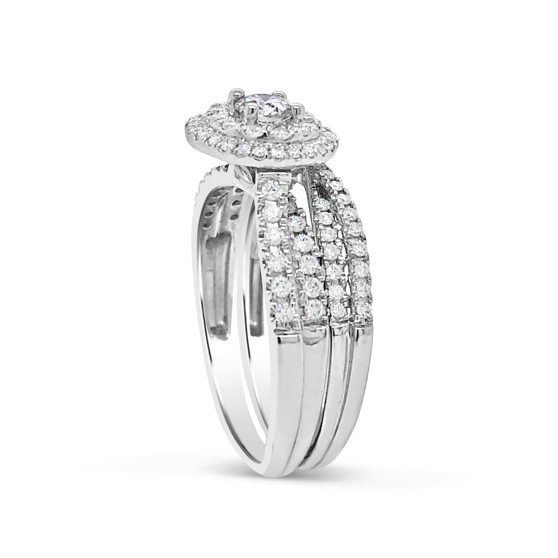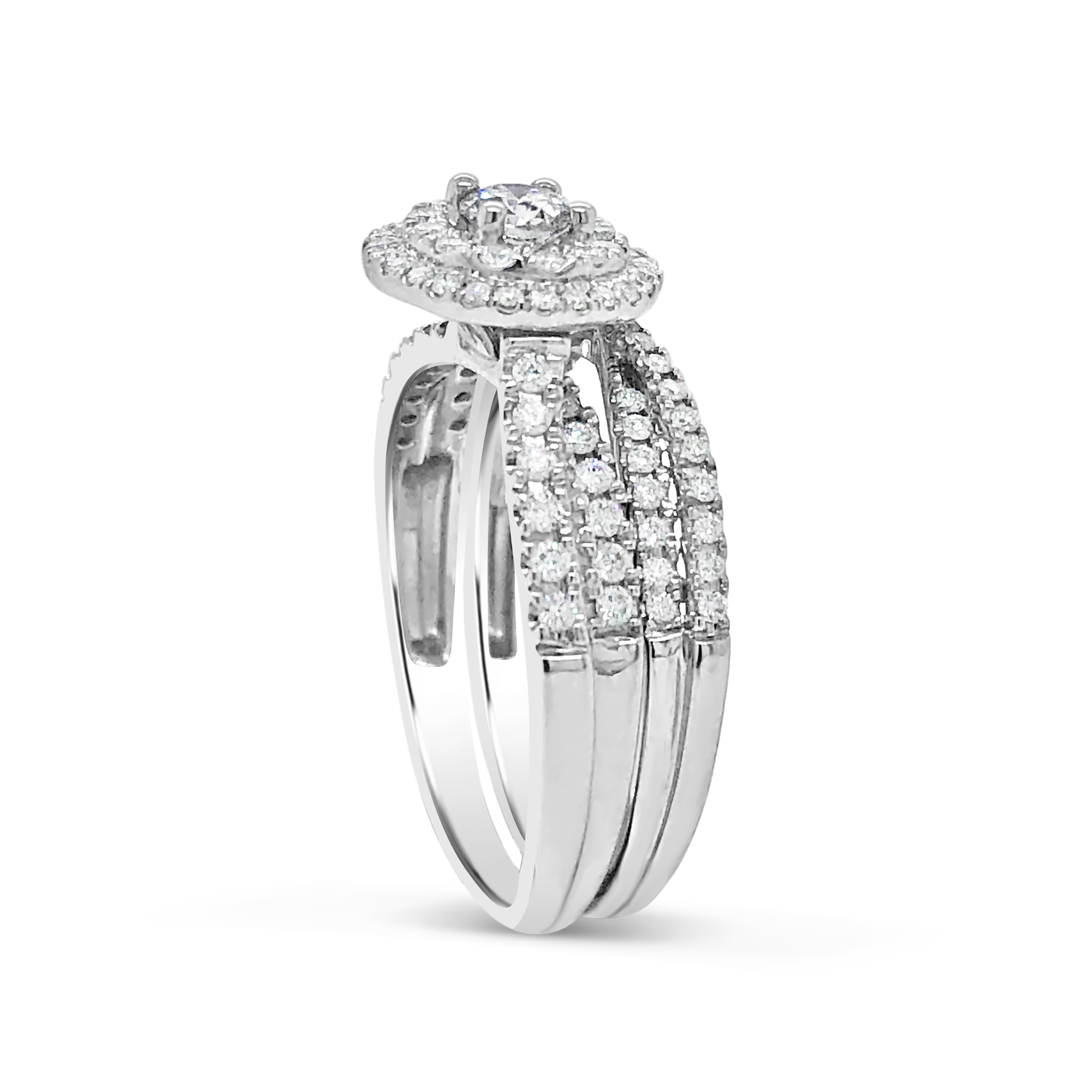 Diamond Halo Engagement Ring .78 CTW Round Cut 14K White Gold