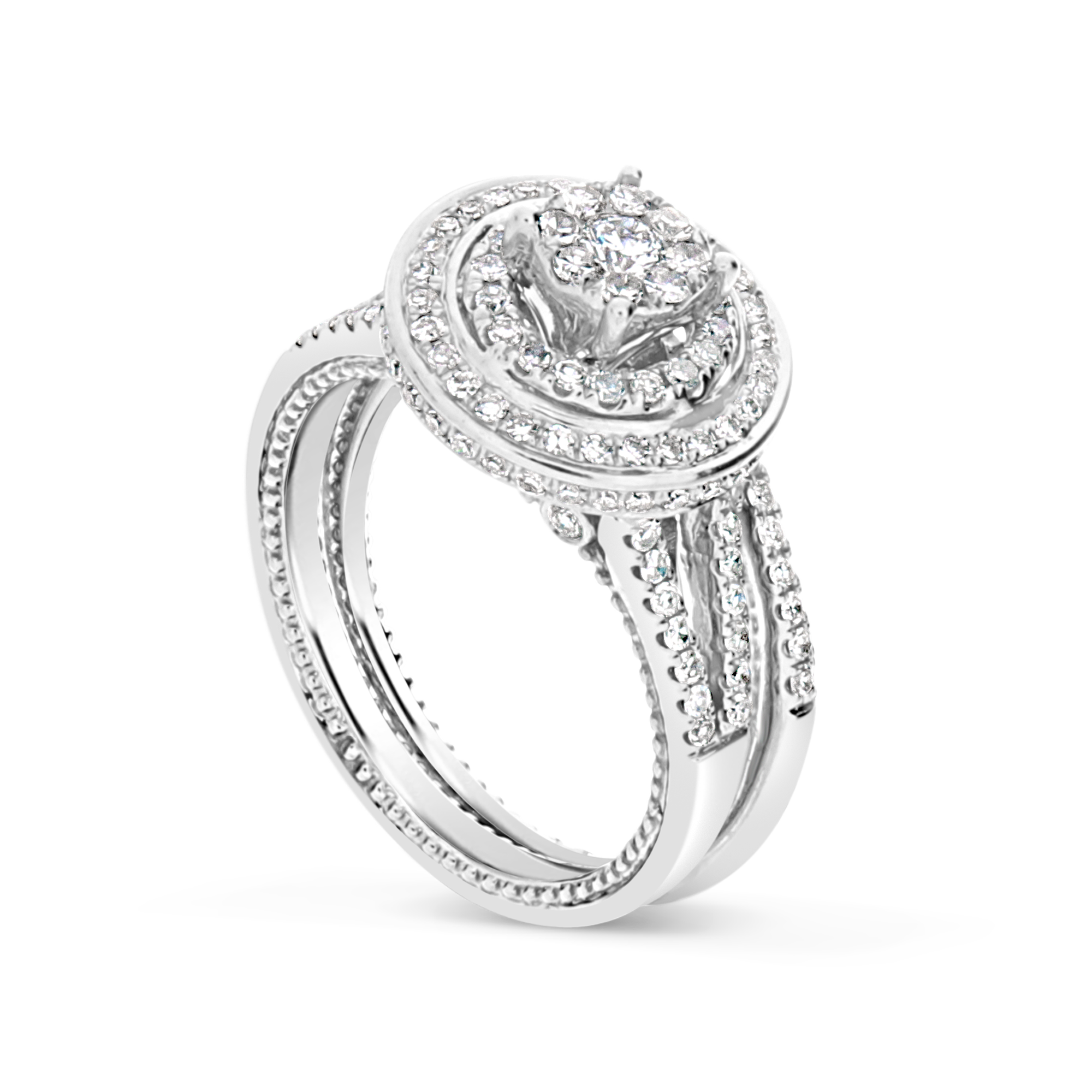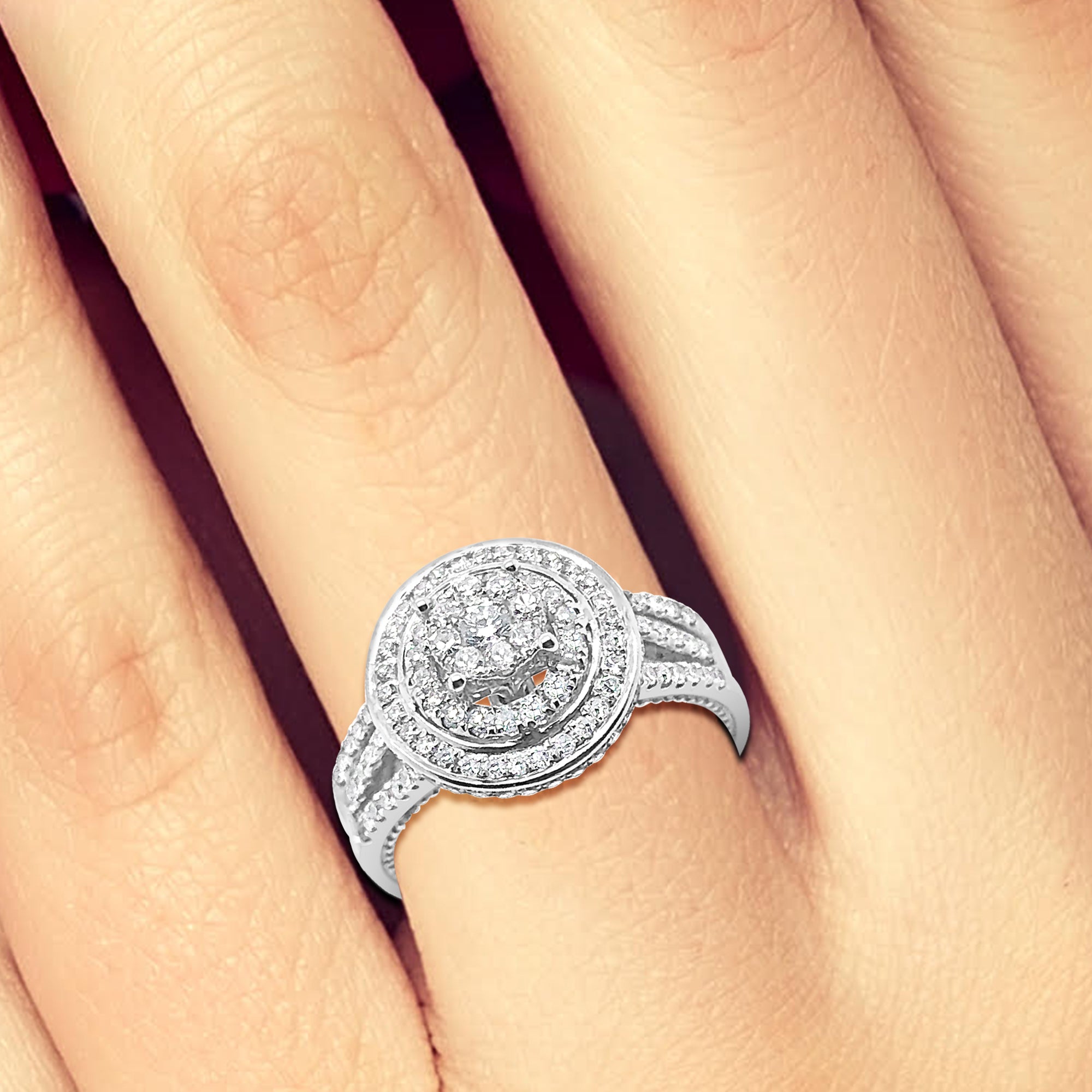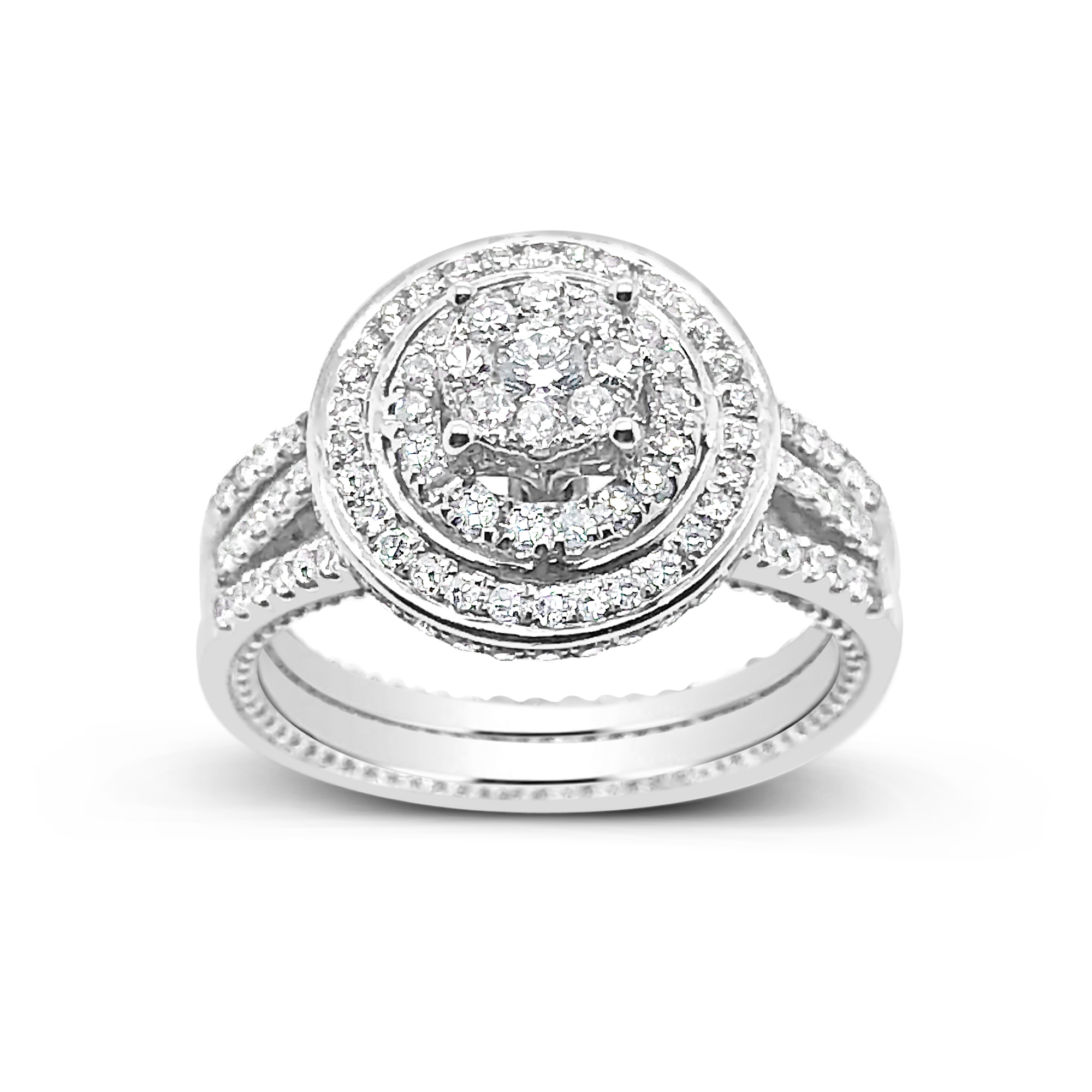 Diamond Halo Engagement Ring .78 CTW Round Cut 14K White Gold Bridal Set