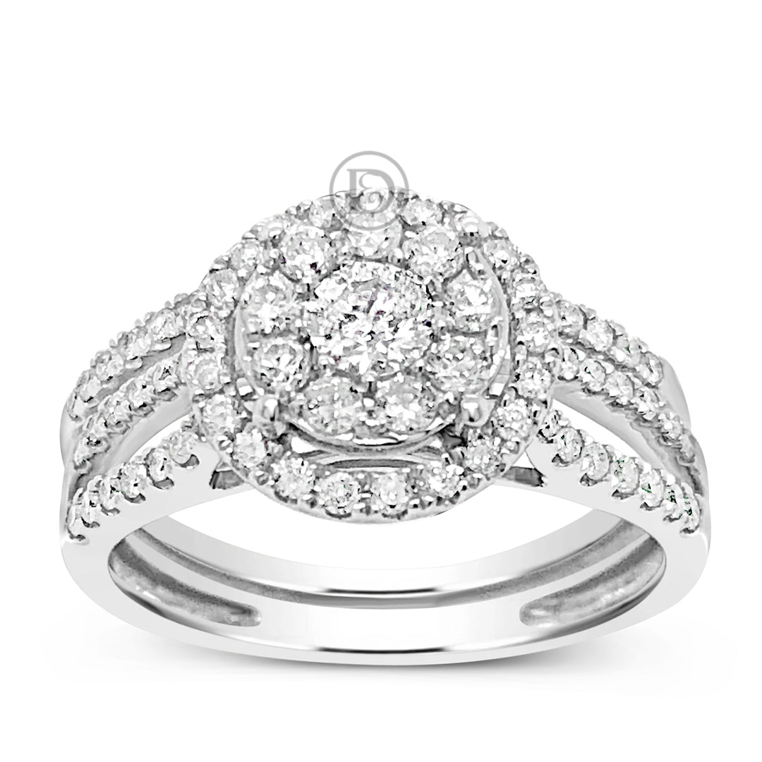 Diamond Halo Engagement Ring .86 CTW Round Cut 14K White Gold