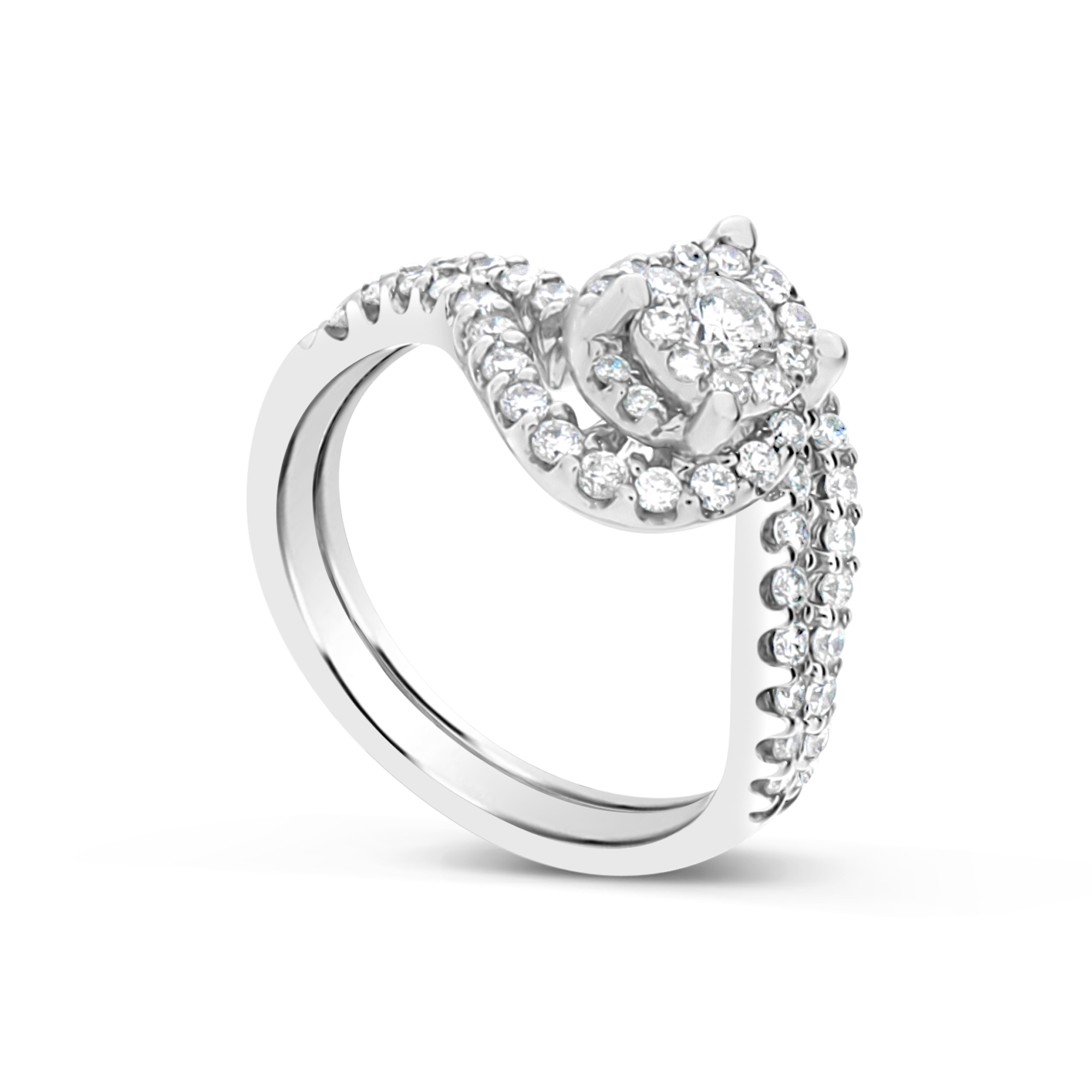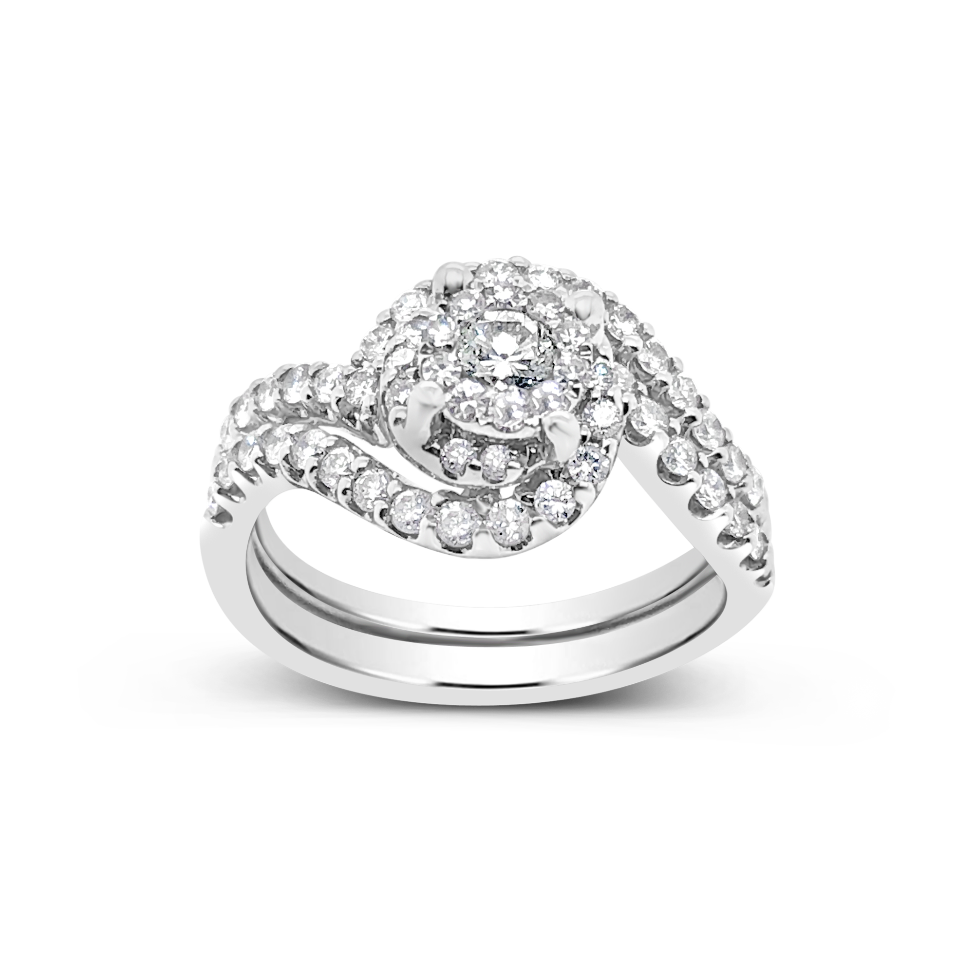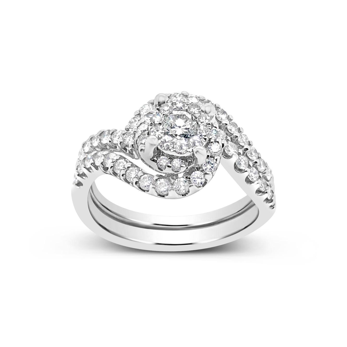 Diamond Halo Engagement Ring .96 CTW Round Cut 14K White Gold