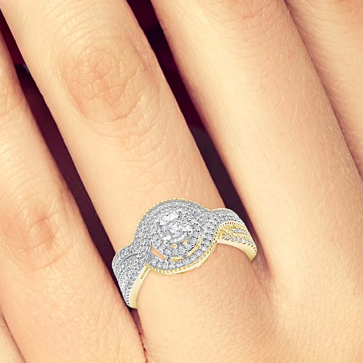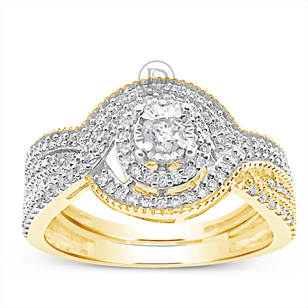 Diamond Halo Engagment Ring .33 CTW Round Cut 10K Yellow Gold