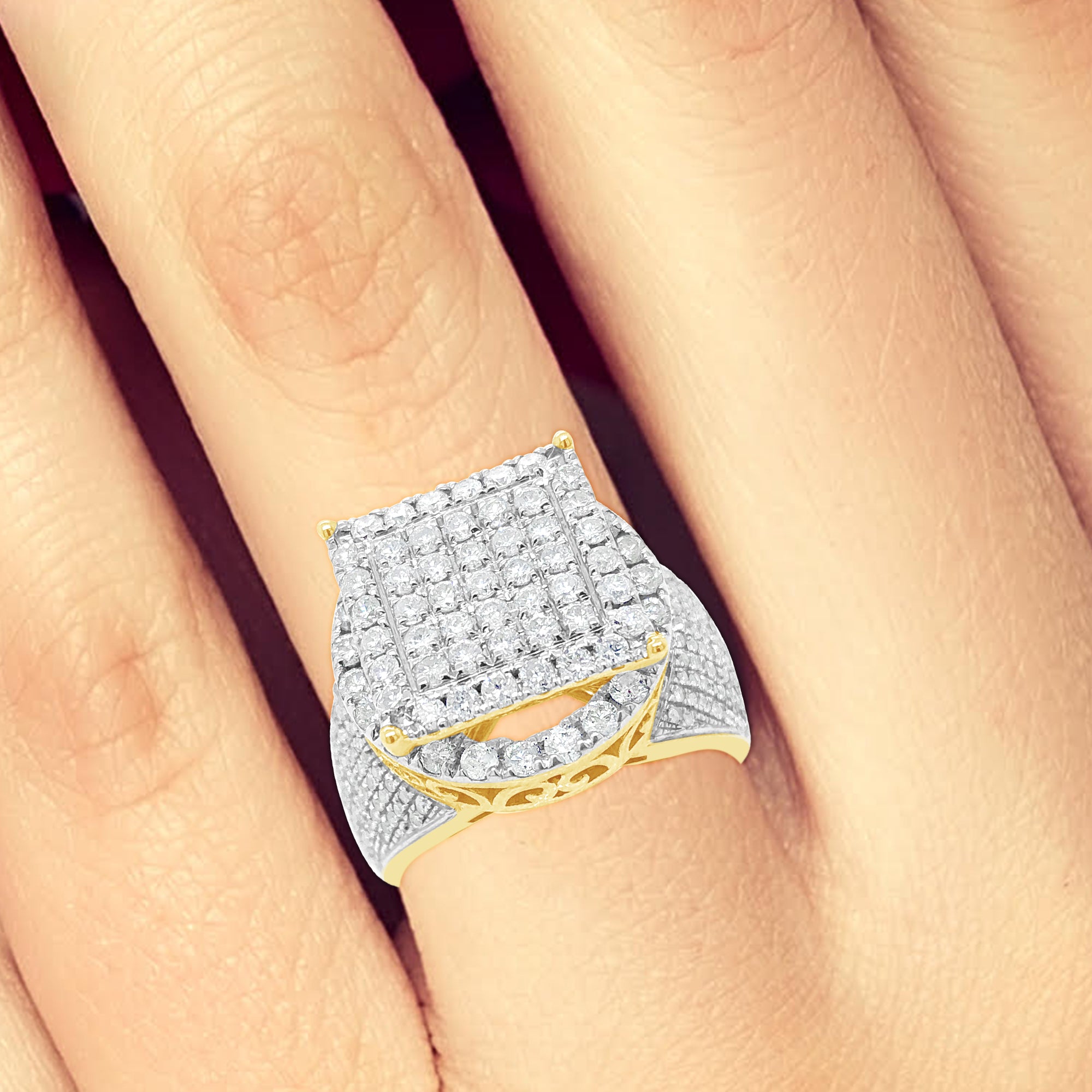 Diamond Halo Ring 1.88 CTW Round Cut 10K Yellow Gold