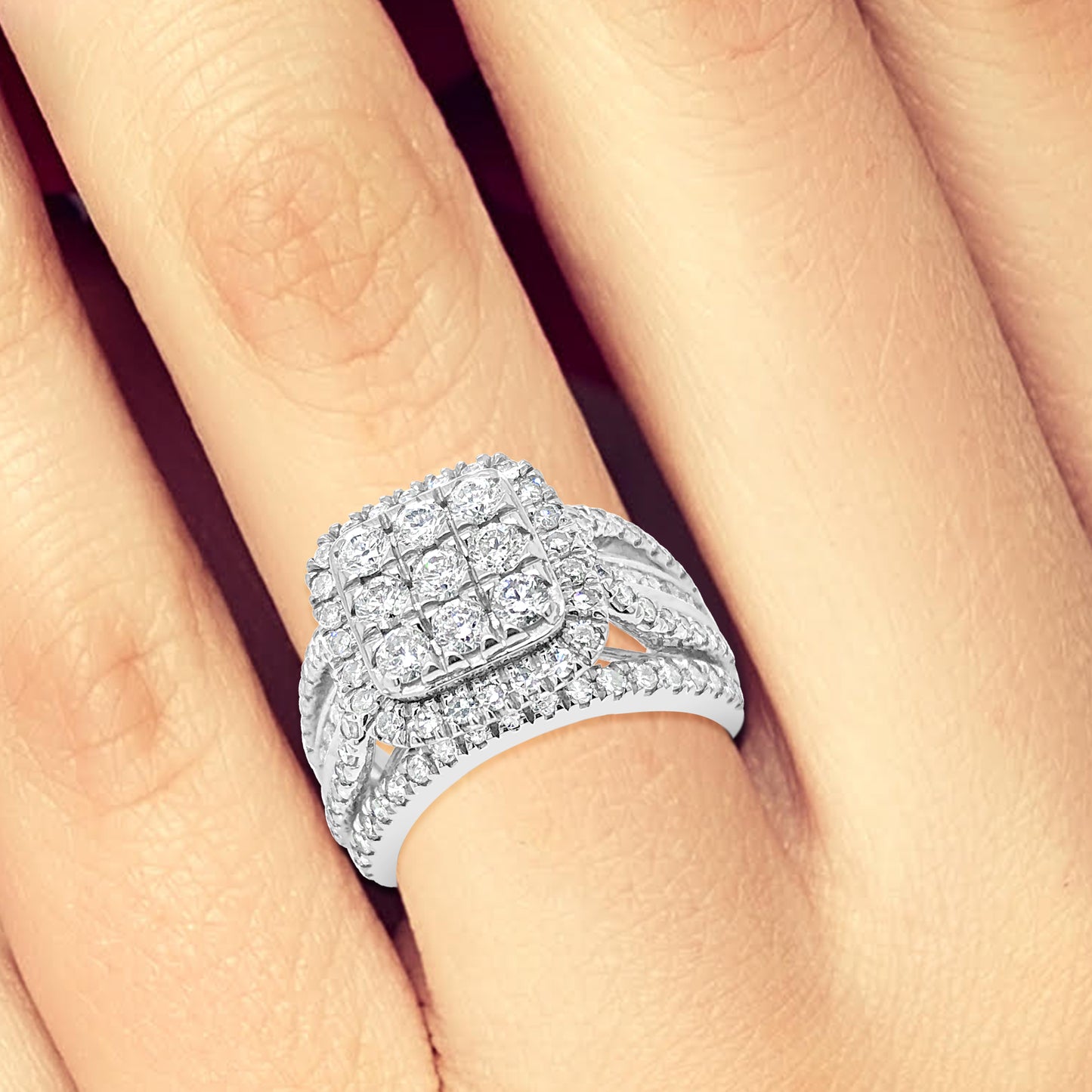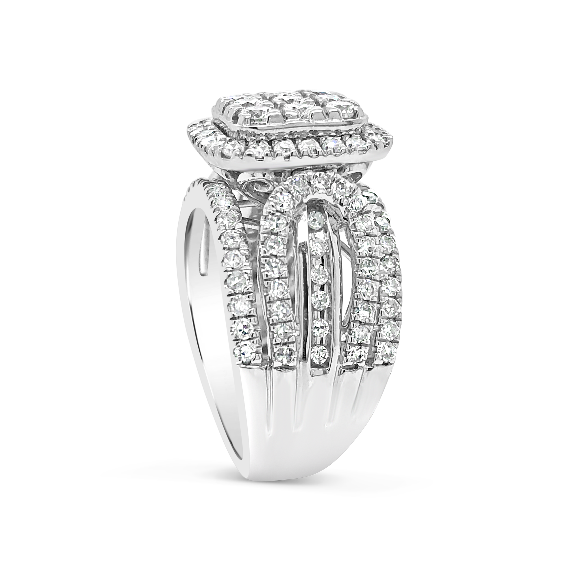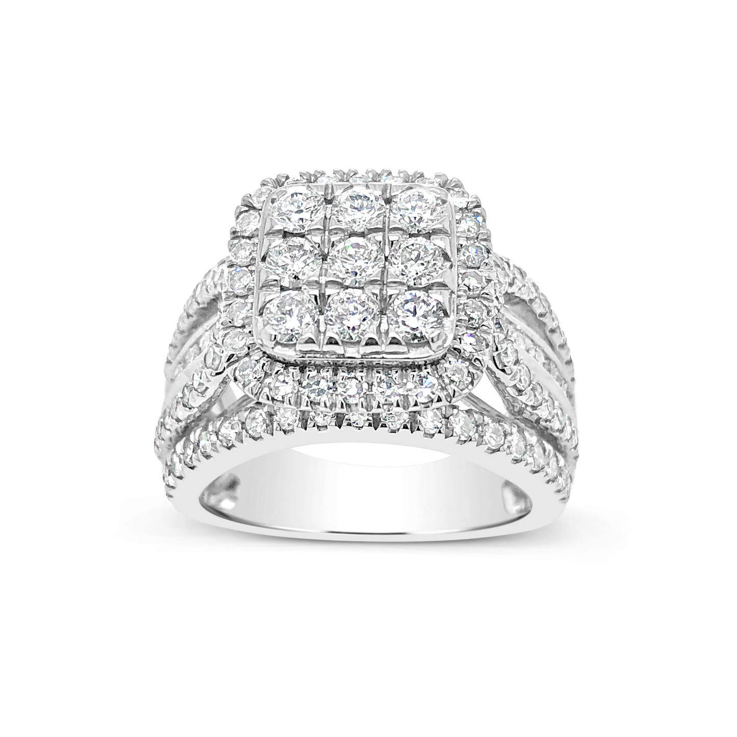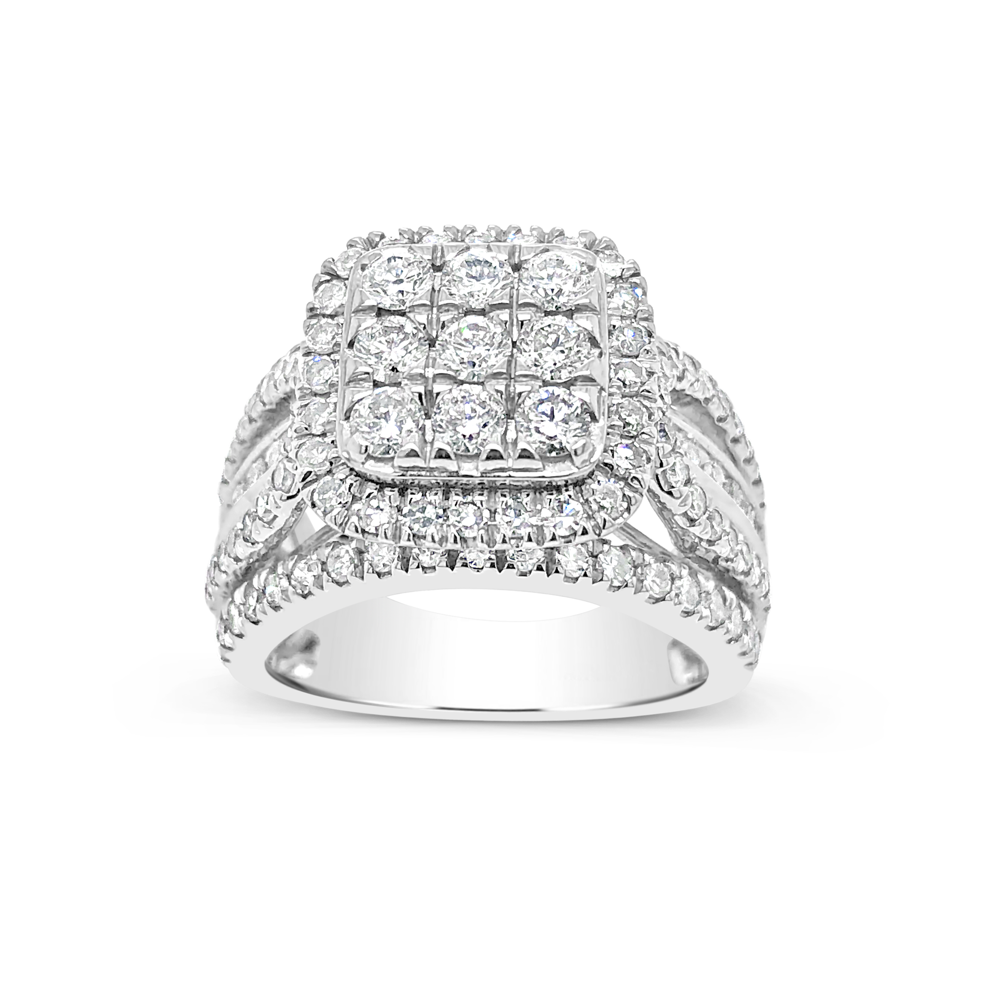 Diamond Halo Ring 2 CTW Round Cut 14K White Gold
