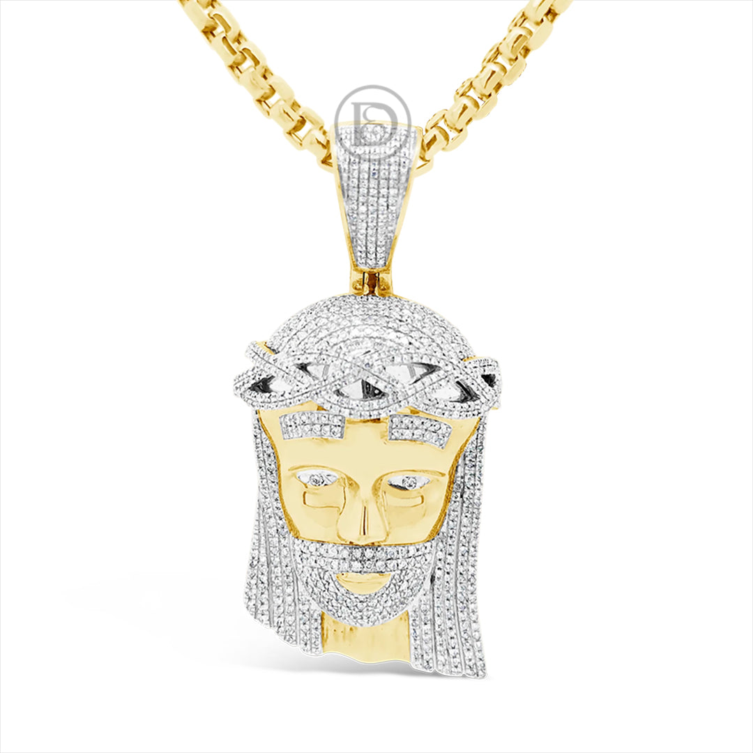 Diamond Jesus Pendant 1.35 CTW Round Cut 10K Yellow Gold
