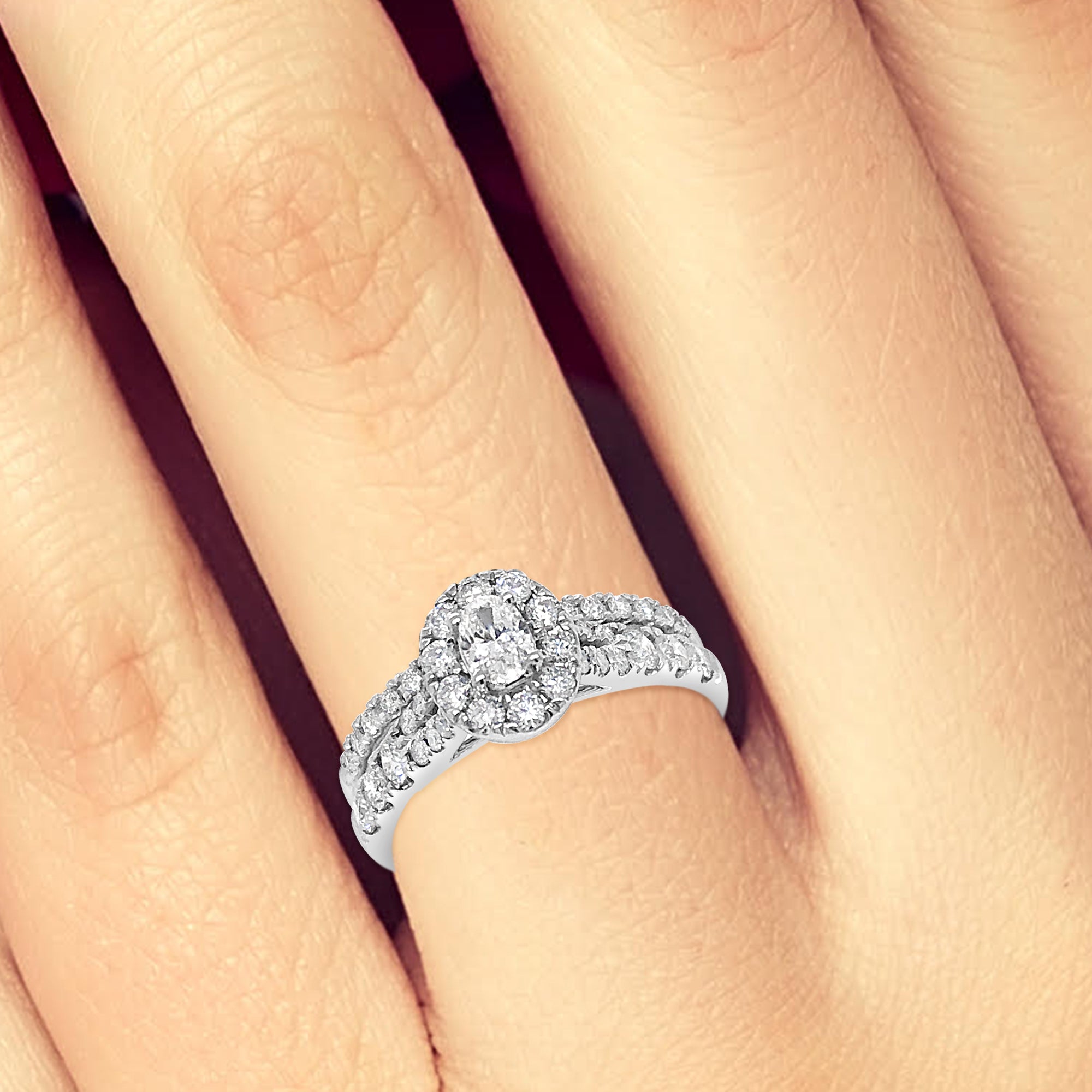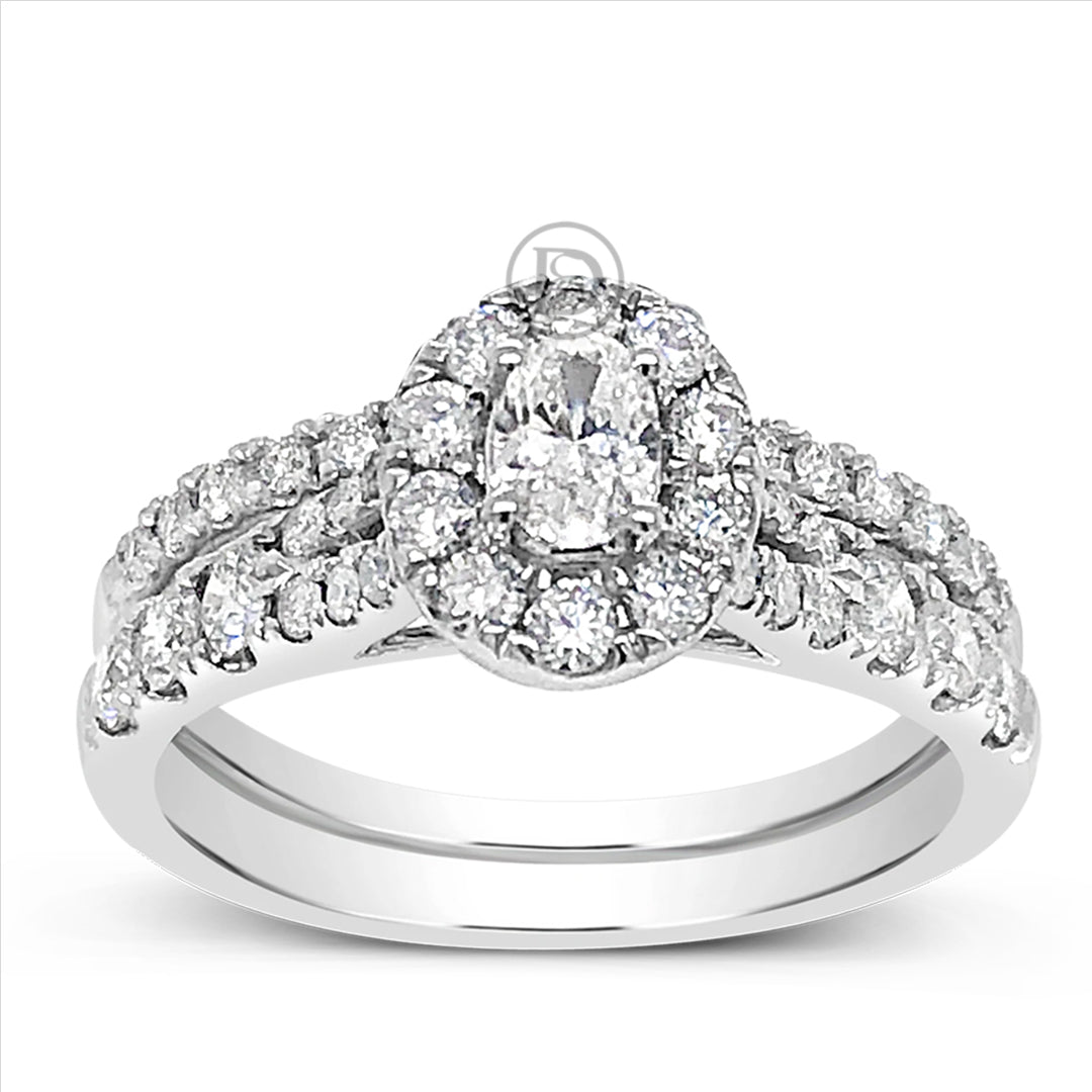 Diamond Oval Halo Engagement Ring 1.19 CTW Round Cut 14K White Gold