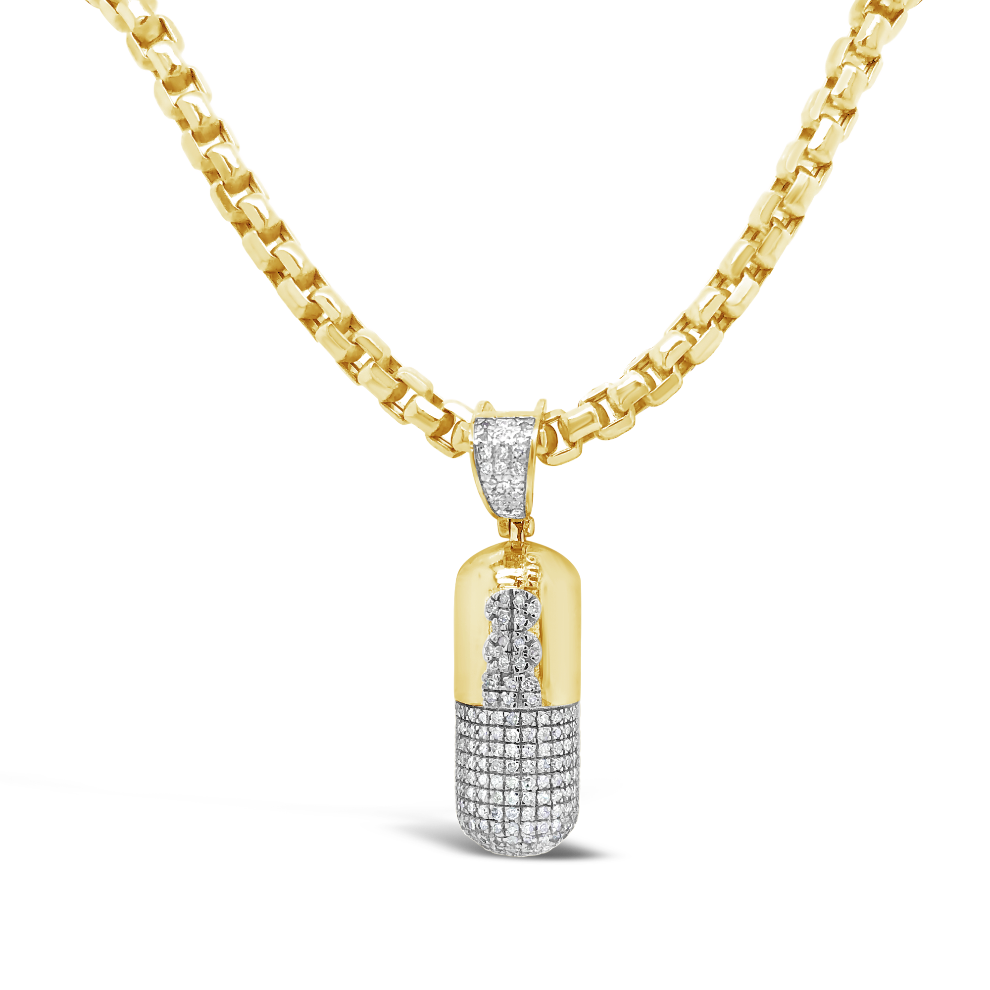 Diamond Pill Pendant .54 CTW Round Cut 10K Yellow Gold