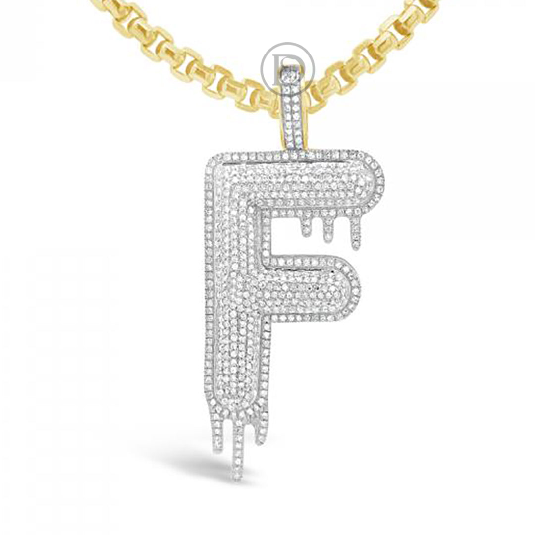 Dripping Diamond "F" Pendant 1.30 CTW Round Cut 10K Yellow Gold