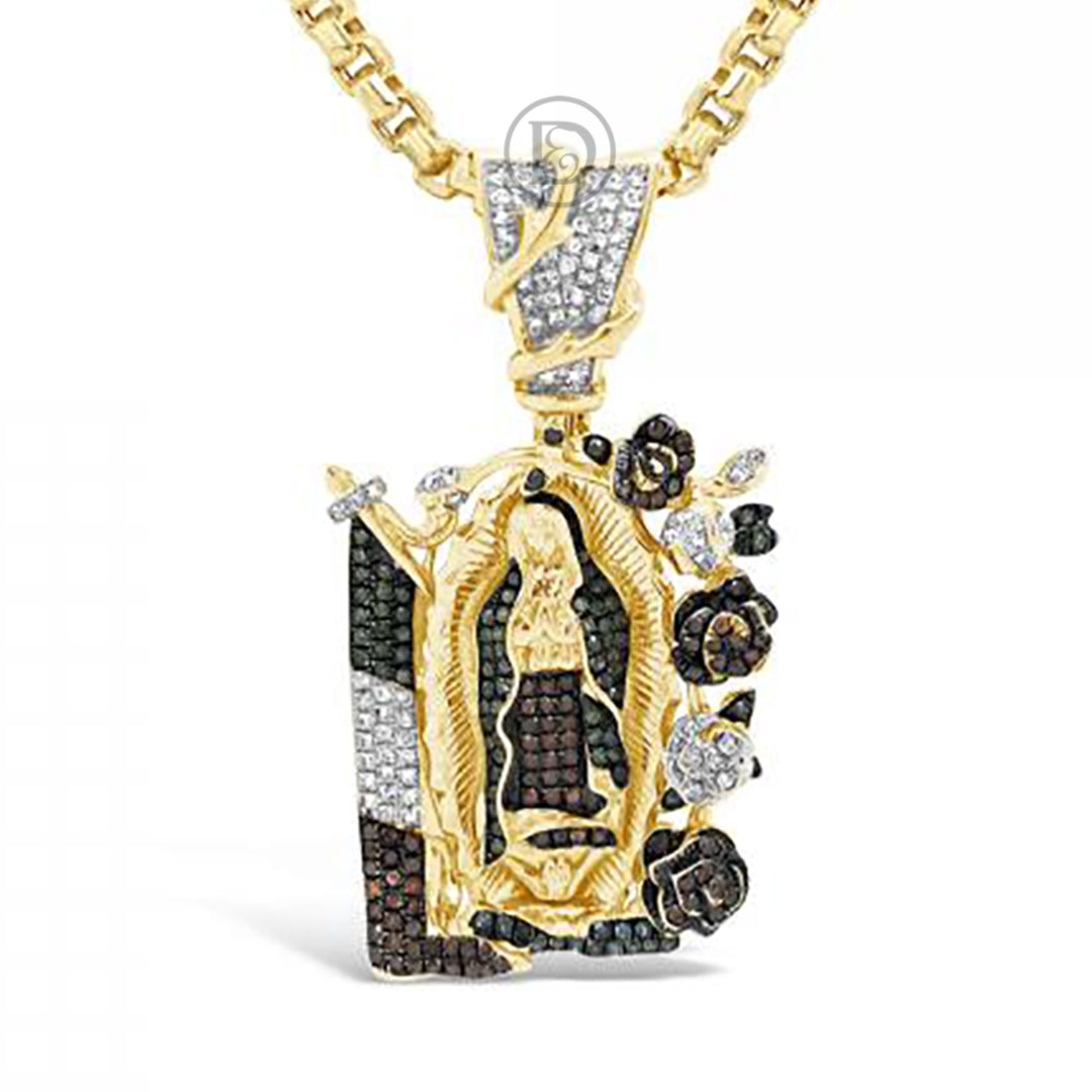 Green & Red DiamondVirgin Mary Pendant 1.8 CTW Round Cut 10K Yellow Gold