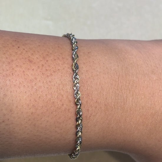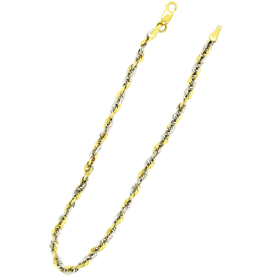 10K 3MM HOLLOW MILANO TWO TONE ROPE BRACELET, CRAFTED IN DURABLE YELLOW AND WHITE GOLD. A SLEEK MILANO LINK DESIGN, THIS GOLD BRACELET OFFERS TIMELESS APPEAL AND EVERYDAY VERSATILITY. FOR BOTH MEN AND WOMEN IT MAKES A IDEAL GIFT OR PERSONAL ACCESSORY FOR ANY OCCASSION.