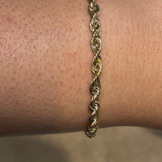 10K 3MM HOLLOW ROPE BRACELET CRAFTED IN YELLOW GOLD, FEATURING A CLASSIC TWISTED ROPE DESIGN WITH A BOLD APPERANCE. PERFECT FOR EVERYDAY WEAR, IT OFFERS A BALANCE ON STYLE, DURABILITY AND COMFORT. FINISHED WITH A SECURE CLASP.